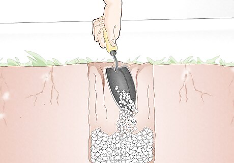 Install some gravel. Add 4 to 5 inches (10 to 13 cm) of gravel to the hole, spreading it evenly across the bottom. This allows proper drainage away from the fence posts during inclement weather, extending the life of the fence itself. Pea-sized landscaping gravel, often just called "pea gravel" is usually the most affordable and effective type of gravel for the job.