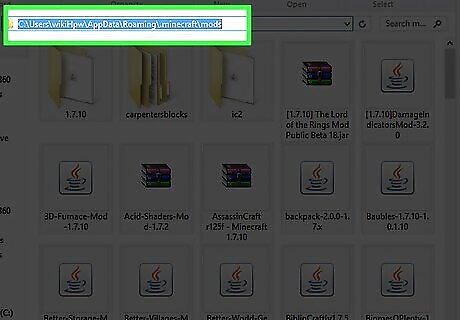 Access your /mods/ folder and put your mod in it. In Windows XP, Vista or 7, Click Start > All Programs > Accessories > Run and type "%AppData%" without quotes. There should be a folder named ".minecraft" (with full stop at the start). Open it. Find and open the folder called "mods". This should be empty. Move your mod file into it. In Windows 8, Search for "Run" and do the same as above In Windows 8.1 and 10, right-click the Start button, click Run and do the same as above.