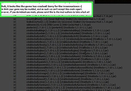 Recognize when you have a conflict. If MC crashes, then find the report by accessing your /mods/ folder again. This time, go to the folder called "crash-reports" and find the .txt file. If it contains something like "Mod is trying to use XXX but it is used by Another Mod" then you have a conflict. If MC does not crash, but during gameplay, you find a strange out-of place block (like Iron Bars in the middle of the underground with nothing around), then probably you have a conflict.
