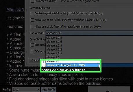Select the version you want from the drop-down depending on your mods (some mods may not be compatible with some versions). Recommended are 1.7.10 and 1.6.4. You must have already run Minecraft once with the target version (loading world is not necessary). If you haven't already, do it now.