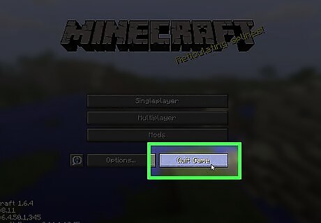 Quit at the Minecraft main menu (Singleplayer, Multiplayer etc.)