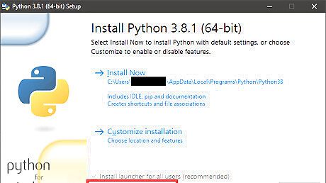 Check off 'Add Python 3.x to PATH'. This will allow you to use Python and pip from a command shell easily, which is important for installing packages.
