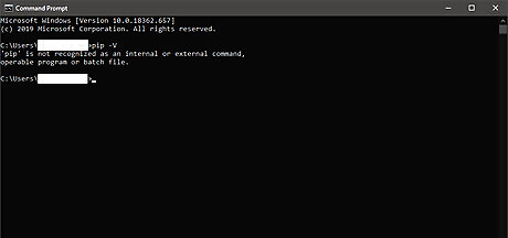 Test to see if pip can be used from the command line already by typing pip -V into a command shell. If this command works and version details for your pip installation are shown, you can skip to Part 2 of this guide. Continue below if the command fails.