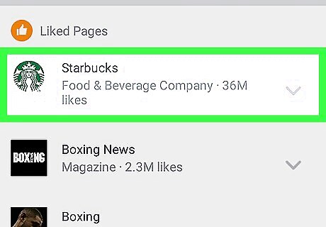 Tap on a page you own or a page you like. You will see a list of all business or fan pages you're managing under the "Owned Pages" heading at the top, and a list of pages you like under "Liked Pages" when you scroll down. If you don't see the page you're looking for, tap See All at the bottom of the list.