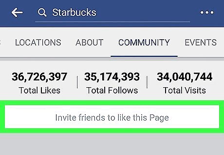 Tap Invite friends to like this Page. You will find this button below the number of Total Likes and Total Follows at the top of the Community tab. It will bring up a list of all your friends.