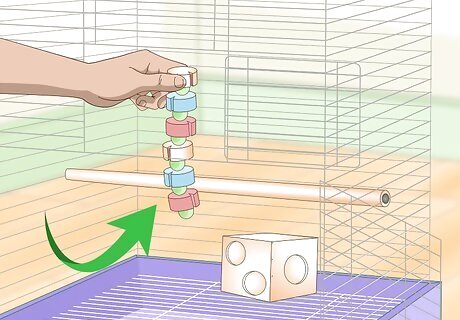 Provide interactive toys. Foraging toys and other interactive toys can help to keep your bird entertained while you are away. Select foraging toys with multiple compartments, or hanging chew toys that spin.