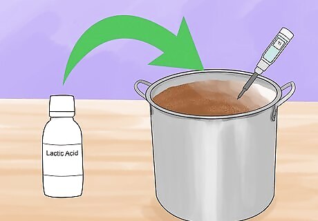 Bring the wort to a pH level of 4.5. Add a few drops of food grade lactic or phosphoric acid to the kettle and stir, then use a pH meter to test the acidity. Starting with a baseline acidity will create the most beneficial fermentation conditions possible and help the bacteria to do its thing much faster. Balancing the pH of your wort prevents other strains of bacteria from taking over and making the beer dangerous or unpleasant to drink. It also protects the proteins in the yeast, which means your beer will turn out with a rich head and plenty of body. A handheld dropper tool will give you more control and prevent you from adding too much acid at once.