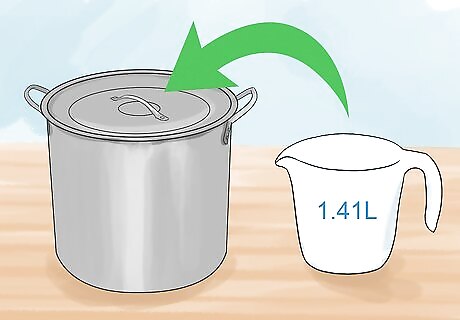 Fill your brewing kettle with water. Start with freshly purified water, making sure it’s completely clean, clear and odorless. A good rule of thumb is to run about 1.5 quarts (1.41L) of water for every pound of malt you plan on using. The pH balance and mineral content of your water can affect the flavor of the finished brew, so try to find a good neutral source. You can contact your local municipal officials to get a full report about the contents of your city’s water supply.
