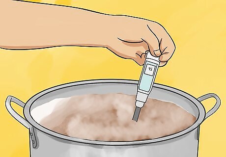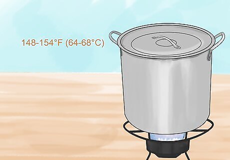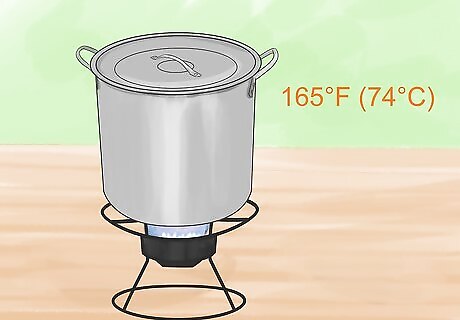 Heat the water to 165°F (74°C). Turn on the burner beneath the kettle and let it begin warming up. If the kettle you're using doesn't have a direct heat source, boil the water first before filling the container and let it allow it to cool to the appropriate temperature. The malt extract you’ll be using to make the wort will have an easier time dissolving in higher temperatures. Wort is the liquid left over from the mash that contains the sugars needed to begin the souring process.