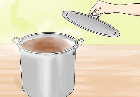 Let the wort sit for one hour. As the wort rests, the malt extract will begin releasing its natural sugars. Give the mixture an occasional stir during this time—otherwise, keep it covered. To test whether your wort has had ample time to absorb the sugars from the malt, perform the trusty iodine test. Cool off about an once of wort and add a couple drops of iodine. If the liquid turns a dark purple color, it's not quite ready. If there is no change in color, it means the most of the starches have already dissolved. If you prefer a more potent brew, feel free to tack on an additional 15 to 30 minutes.
