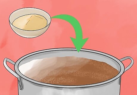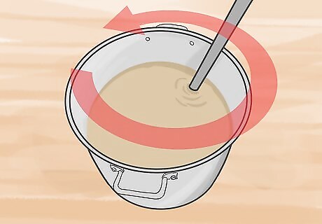 Add the malt extract. Stir in the powdered malt slowly, making sure to break up any large, doughy clumps that happen to form on the surface. Continue stirring the mixture until the malt is completely dissolved and distributed evenly throughout the tun. Most homebrew starter kits include malt extract among their ingredients. A basic malt extract is the simplest way to prepare a wort for sour kettling. As your brewing skills, however, you can begin experimenting with other mash-making methods, like milling your own special grains.