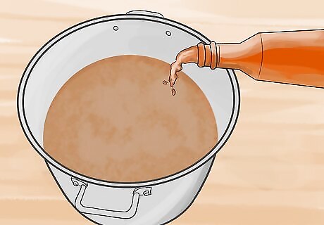 Introduce the lactobacillus to the wort. Dump the cultures straight into the kettle, then stir thoroughly and cover. In order to successfully sour a batch of beer, you’ll need to add approximately 10 million lactobacillus cells for every mL of wort. Look closely at the measurements listed on the packaging to calculate exactly how much you’ll need for the amount of wort you’re working with. Most brewmasters recommend using a pure culture, as these tend to produce more consistent and predictable results. Pure cultures of bacterial additives like lactobacillus are often sold in small vials at homebrew supply stores. If you’re having trouble tracking these down, one useful alternative may be to look for pure cultures in the form of dietary supplements.