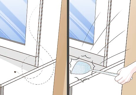 Try using an electric flyswatter for an easier, efficient option. Electric flyswatters are devices that lure in flies with a light and kill them upon contact. Stand near the fly with your electric flyswatter to kill it effortlessly and quickly. Be sure to read over instructions carefully before use. Avoid touching the racket area, and always let the flyswatter fully cool down before storing it.