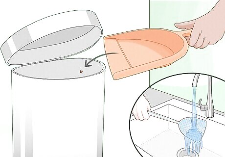 Wipe up the fly and clean off your flyswatter. Rinse the flyswatter in soap and water, and use a tissue or paper towel to wipe up the mess. Make sure to wash your hands! You can also disinfect with a cleaning solution to prevent spreading any germs.