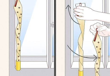 Hang fly paper in areas with many flies for a cheap and easy option. Fly papers, or fly ribbons, are strips of paper coated in a sticky attractant. Flies approach the paper because they are attracted to the smell, and they get stuck to the paper and die. You can hang fly paper near your entrances, above your windows, or next to your trash can, for example. Fly paper can be hung up indoors or outdoors. Replace your fly paper after you collect a handful of dead flies.