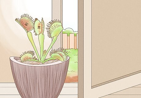 Set out a Venus flytrap for a natural, hands-off option. Venus flytraps are carnivorous plants that feed on insects. The flytrap has a reddish, sweet-smelling interior, which insects mistake as a flower. A fly will land inside, and the flytrap will snap shut. The fly cannot escape, and the flytrap will consume the fly. Place your flytrap in popular fly areas, like your kitchen or near your door. Purchase Venus flytraps at most home supply stores or garden centers.