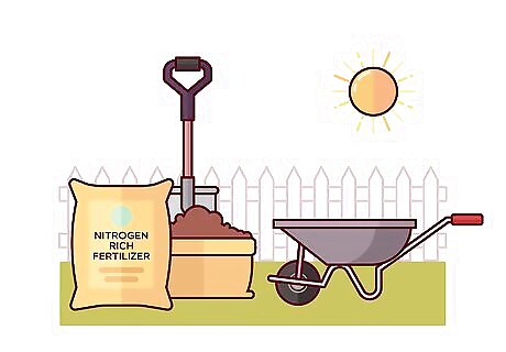 Apply a nitrogen-rich fertilizer. Clover does not do well in a nitrogen-rich environment, so a nitrogen fertilizer will kill this weed. Look for a fertilizer with a high nitrogen content at your local hardware store or online. Spray the fertilizer directly on the clover, following the instructions on the label. Go for an organic, slow release fertilizer if you only have small patches of clover in your lawn. If you have large patches or sections of clover, opt for a fertilizer that is quick release to get rid of this weed right away. You can apply the fertilizer once a month, or based on the instructions on the label. Applying the fertilizer every spring is also a good preventative measure to stop clover from growing.