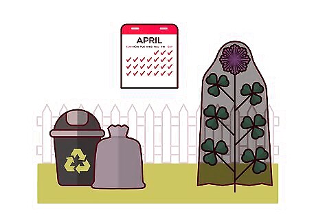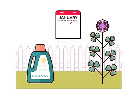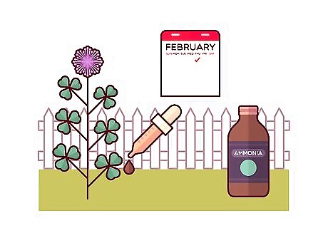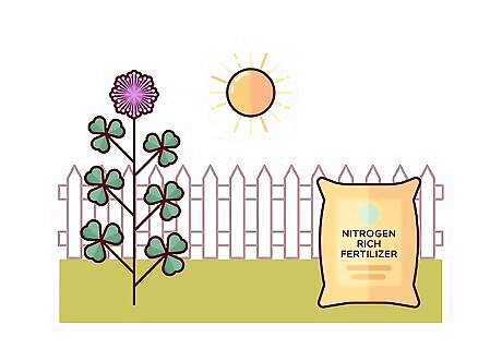 Fertilize your lawn in the spring to keep clover away. Use a nitrogen-rich fertilizer on your lawn to maintain it and prevent weeds like clover from growing. Fertilizing your lawn once a year in the spring can also help to keep the grass healthy and less prone to weeds and pests.