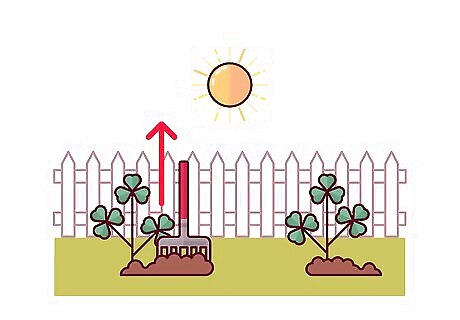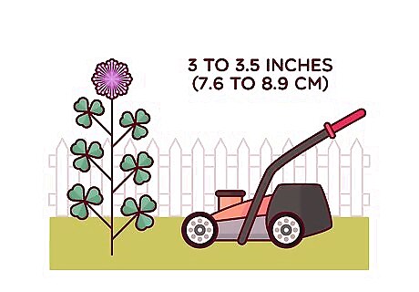 Mow your lawn at a high setting so your grass outgrows the clover. Set your mower to a height of 3 to 3.5 inches (7.6 to 8.9 cm) so the grass is not cut too short. Your mower should go no lower than 1 to 1.5 inches (2.5 to 3.8 cm) when you mow your lawn. Keeping the grass tall can help to block out sunlight that can feed clover and other weeds, preventing them from growing.