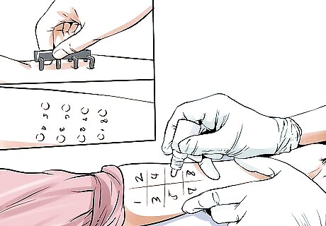 See an allergist and get tested for allergies if necessary. After talking to you and examining your skin, your doctor may decide to refer you to an allergist. An allergist can perform allergy tests to determine if an allergen may be causing your symptoms. If no allergen is found, then your doctor may try a treatment for eczema to see if it helps. If your skin condition improves, then that will confirm that you have eczema. Some common allergy tests include: RAST testing. RAST testing, or radioallergosorbent testing, is a low-risk test to determine allergies. To conduct this test, the immunologist draws blood from the patient. Then, the suspected allergen (such as peanut protein, pet dander, etc.) is combined with the patient's blood in a lab. After that, a radiolabeled IgE human antibody is added to the patient's blood. The antibodies will combine to the allergen. The severity of the response indicates the severity of the allergy. Skin prick test. Skin prick tests are performed under the supervision of a skilled allergist and immunologist. Since they will be exposing you to a potential allergen, anaphylaxis is possible. During the test, you will receive small doses of what you are allergic to (pollen, mold, dander, etc.) either via shots or placed under the tongue.