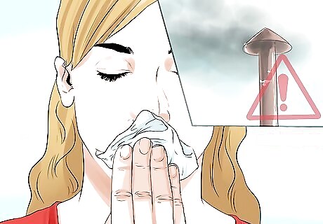 Keep your environment in mind. Individuals are also more likely to develop this condition if they live in urban areas with a high level of pollutants. Some allergens, when inhaled such as molds, dust, pollen, pet dander or cigarette smoke, can aggravate the condition. Do your best to avoid exposure to cigarette smoke and other environmental irritants. Here are some factors that might also exacerbate eczema in individuals: Wool or synthetic clothing Specific soaps, detergents, antiperspirants, and chemicals Preservatives in topically applied products Perfumed products Latex Dust mites Tree and grass pollen A microbial infection or colonization Temperature extremes Humidity Hard water Cooking with gas Proximity to road traffic
