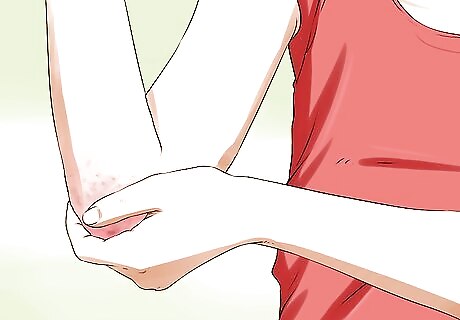 Feel the texture of your skin. Eczema causes patches of your skin to take on a leathery or scaly texture. The scaly or leathery texture is caused by chronic scratching or rubbing of the reddened patches of your skin. Touch your skin to see if the texture has changed. If it feels leathery or scaly, then it may be the result of eczema. These scaly patches might also begin to peel. When they do, your skin will look how it does after you get a sunburn.