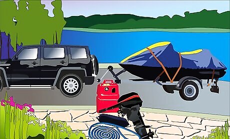 Prepare the boat. Prepare as much as possible while the boat is on the trailer, and on dry land. Prepare the engine, fuel, safety gear, mooring lines, fenders, etc. You should be ready to drive the boat off the trailer right after it's backed down the ramp. Other people want to launch as well, and tempers will flare if you use dock time to do things you could have done in the parking lot. It is a good idea to have your own written checklist. If you're launching a small boat into the water, make sure to put the drain plug in so you don't capsize the boat.
