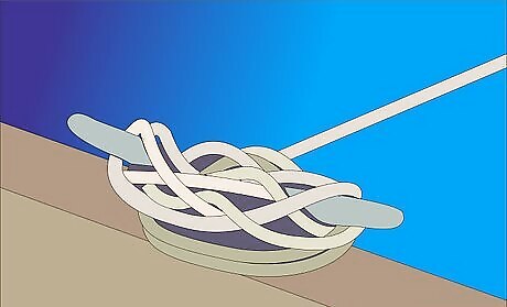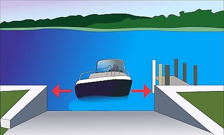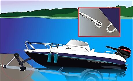 Secure the boat to the dock. Tie the mooring lines to cleats on the dock. Use fenders to prevent the hull from being scratched. If you forget to tie a dock line to the boat, you won't be able to sure your boat after you've launched it.