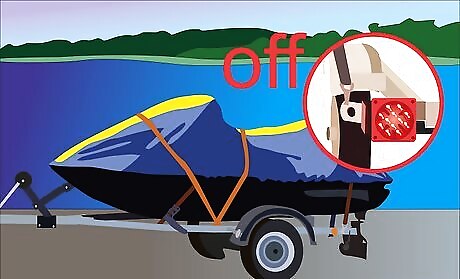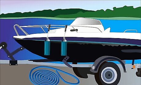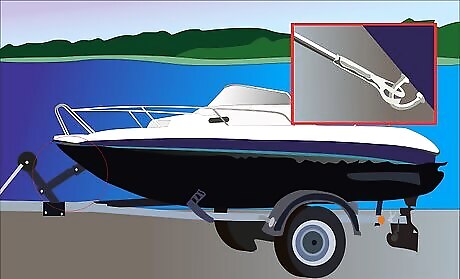 Crank the engine. Make sure the engine is in the water, and turn it over. Once it's running, undo the winch hook from the bow eye, and back the boat out of the trailer. For smaller boats, you can just push the boat out while holding a mooring line.