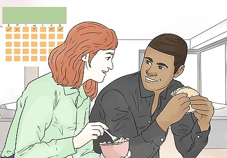 Be open to new things. Don't try to do what you did, the way you did it with your ex. Remember that this relationship is new and different. You don't want to replay your old relationship with a new boyfriend. Trying new things, having new rituals, and making new traditions with your boyfriend will help the two of you bond — making it easier to like him even though you still love your ex. If you and your ex ate lunch together every Wednesday and Friday, consider meeting your new beau for weekend brunch. If you called your ex "Baby," try calling your current boyfriend "Sweetie," "Honey," or some other nickname.