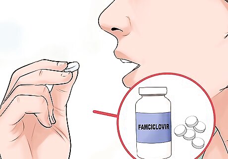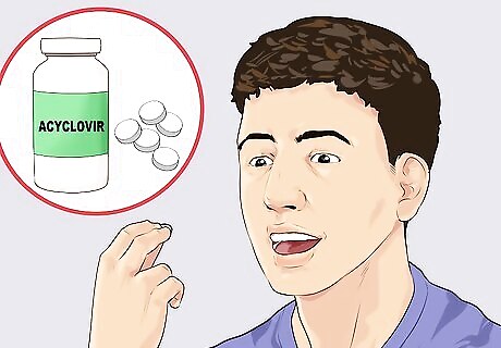 Take prescription antiviral medications. There is no cure for oral herpes and treating it with antiviral medications can help heal outbreaks sooner and lessen the severity of recurrences. It may also minimize the chance of transmitting the virus to other people. Common medications for oral herpes are Acyclovir (Zovirax), Famciclovir (Famvir), and Valacyclovir (Valtrex). Your doctor may also prescribe an antiviral skin cream like Penciclovir instead of a pill. These creams have basically the same effect as pills but are very expensive. Your doctor may advise using the medication only if you have symptoms or an outbreak, or she may recommend daily use even if no signs of an outbreak are present.