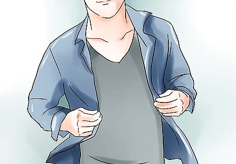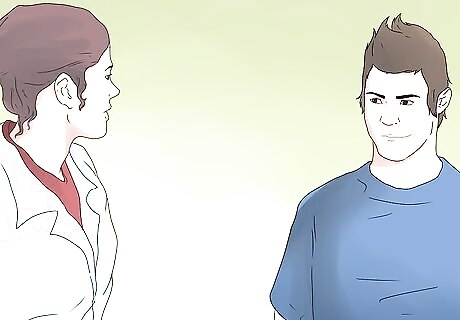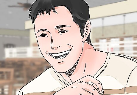 Look strong and inviting. To project strength, maintain keep your back straight and your shoulders squared. Keep your legs open, more than shoulder width apart, and don't put your hands in your pocket. To project availability, keep your arms and legs uncrossed. Refrain from looking down at the ground.