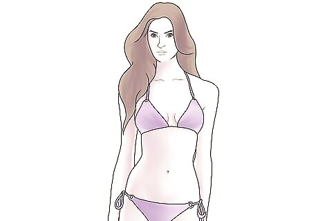 Do Angel-worthy make up. To look like a VS Angel, you need to learn how to do your makeup like a VS angel. The Angels don’t tend to go overboard on their makeup, they prefer more of a healthy, glowing look with some added sparkle and shimmer! Try to go for a mineral or powder foundation that matches your skin tone perfectly - you really don’t want to look like you’re caked in makeup! Apply a little matching concealer under the eyes or to cover any blemishes, if necessary. Then use a pinky-bronze colored blush to add a healthy glow to your cheeks. Apply eyeshadow in neutral colored creams and browns. Then, depending on your skin tone, use a black or brown eyeliner to line your upper lid only. Use a matching mascara to add volume and definition to your lashes. The Angels don’t usually wear bold lipsticks, they prefer to go for soft pink and nude pouts. Try using a balmy lipstick that’s just a shade or two lighter or darker than your natural lip color. Stay away from glosses or anything that’s too shiny or shimmering. Just look at MAC lipsticks for a lovely nude shade.