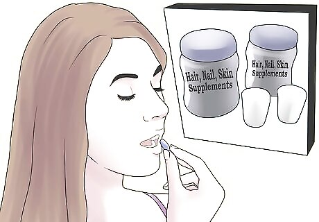 Take supplements for healthy hair, skin and nails. Although a diet rich in healthy juices and plenty of fresh fruit and veg will provide you with plenty of vitamins and nutrients, it’s a good idea to take some additional dietary supplements in order to get Angel-worthy hair, skin and nails. Consider taking a cure-all vitamin supplement such as PHYTO Phytophanere, which helps hair, skin and nails to grow faster and stronger, and works to significantly reduce skin blemishes and minimize pores. Alternatively, you could you a water booster, like Dr. Brandt Anti-Oxident Water Booster. This is a kind of vitamin-rich syrup which you add to water. It keeps your skin looking clear and healthy, while also giving you an added energy boost! The Angels’ nutritionist also recommends taking a supplement to get the gastrointestinal system working (to prevent bloating and aid weight loss) and a supplement to promote muscle function. However, it’s probably a good idea to speak to your doctor before you start taking either of these. Take advice from the Angels themselves! Miranda Kerr drinks four teaspoons of coconut oil a day to keep her skin and hair looking glowing and healthy. Whitney Bowe Whitney Bowe, Integrative Dermatology Expert Certain nutrients, such as vitamin C and omega-3 fatty acids, are particularly beneficial for the skin. In addition to a healthy diet, regular exercise and stress management can also help improve skin health.