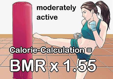 Adjust your BMR according to your activity level. The number of calories your body actually burns every day, however, varies based on how active you are. The more active you are on a daily basis, the faster your metabolism is, and the more calories your body burns. Use the Harris Benedict Equation to calculate how many calories your body truly burns in one day. This final number tells you how many calories you need to eat to maintain your current weight. If you are sedentary (little or no exercise) : Calorie-Calculation = BMR x 1.2 If you are lightly active (light exercise/sports 1-3 days/week) : Calorie-Calculation = BMR x 1.375 If you are moderately active (moderate exercise/sports 3-5 days/week) : Calorie-Calculation = BMR x 1.55 If you are very active (hard exercise/sports 6-7 days a week) : Calorie-Calculation = BMR x 1.725 If you are extra active (very hard exercise/sports & physical job or 2x training) : Calorie-Calculation = BMR x 1.9