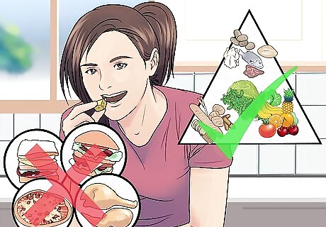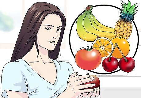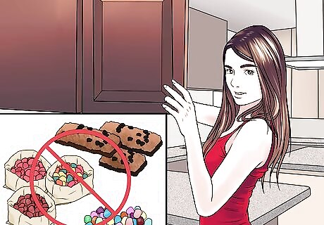 Replace dessert with fruit. Treating yourself with junk food once a week can undo all of your week’s hard work. One slice of cheesecake, for example, can be over 1,000 calories. If you really need something sweet, try eating a piece of fruit instead. Dessert usually consists of bad carbohydrates that also leave you feeling hungry quickly. If you want a frozen treat, try freezing grapes or blueberries. You can also mash a banana and add a teaspoon of honey for an ice cream-like treat.