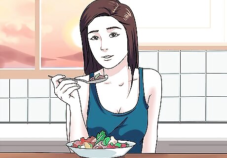 Have a nutritious breakfast every morning. Fueling yourself properly at the beginning of the day ensures that you don’t put your body in starvation mode by lunchtime. Starvation mode essentially means that your body holds on to fat, even if you don’t eat much. It also ensures that when you do eat, you will overindulge to compensate. Try to make sure your breakfast is balanced nutritionally, including a good source of protein. Many popular breakfasts are very carbohydrate-heavy with little protein, making you hungry much sooner.