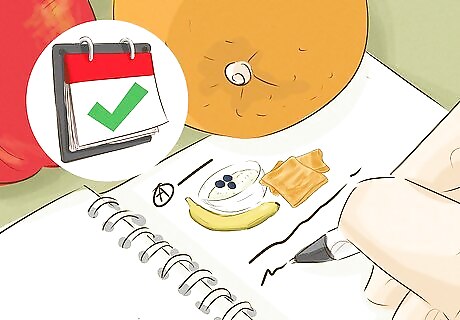 Plan your meals. You are more likely to choose healthy, filling meals when you plan them in advance, rather than making in-the-moment decisions. Take time once a week to plan your meals for the week, including snacks and treats. Focus on incorporating filling, healthy foods into each meal, and use your meal plan to make a shopping list to ensure you bring home robust foods. It may also help to have a small snack before going grocery shopping. This helps you feel full in the store and can keep you from making impulsive, hunger-driven decisions.