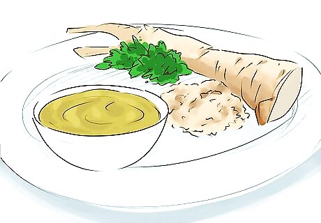Opt for low-calorie flavor enhancers. Some sauces, such as ketchup and barbeque sauce, are high calorie and do little to help you feel full. Opt for lower calorie flavor enhancers such as fresh herbs, ground spices, and sauces like mustard, horseradish, and hot sauce. Add fresh herbs to meats, salads, and roasted vegetables to give them rich, complex flavors. Rosemary goes well with most meats, and herbs like cilantro can help a salad taste extra fresh.