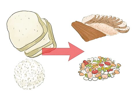 Incorporate low-GI foods into your meals. Foods that are low on the glycemic index (GI) scale take longer for your body to break down, and so can help you stay full for a greater period of time. Try to avoid overly-processed carbohydrates such as white bread and instead opt for whole-grains, plain nuts, legumes, and seeds. Although some studies support the use of low-GI diet for weight loss, more research needs to be done to determine whether it is effective. Try to pair low-GI carbohydrates with other nutrient-dense foods to make sure you stay full and still get what your body needs. For example, you may make a snack out of a hard-boiled egg, which offers protein, and half an apple, which provides low-GI carbs. Consider reducing highly processed foods like white bread, pastries, cookies and crackers to once a week, or if possible, eliminating them entirely.