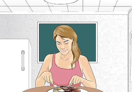 Eat a healthy diet. Consume a diet low in saturated fat, trans-fats, cholesterol, sodium, and added sugars and one that is high in fiber. Eat plenty of fruits, vegetables, whole grains, and fat-free or low-fat dairy products. Your specific caloric and nutritional needs will depend on your age, weight, sex, and physical activity level. As a general guideline, the United States Department of Agriculture recommends: Between two and three cups of vegetables Between one and a half and two cups of fruit Between five and eight ounces of grains Between five and six and a half ounces of protein (lean meats and fish, eggs, soy, legumes) Three cups of dairy Between five and seven teaspoons of heart-healthy oil such as olive oil or canola oil each day for adults