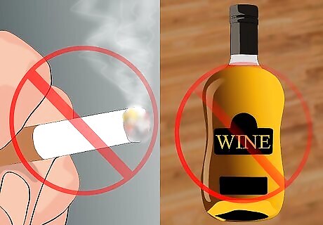 Avoid alcohol and tobacco. Smoking causes 440,000 deaths per year in the United States alone, as well as a wide variety of expensive chronic illnesses. Excessive alcohol intake produces liver damage and increases your cancer risk. Limit alcohol consumption to no more than two drinks a day if you’re a man, or one if you’re a woman.