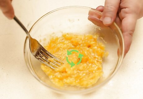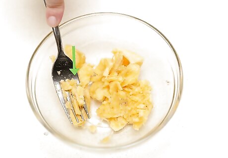 Put the banana in the bowl. Use a fork to mash the banana until creamy. When the banana is feels like soft cream, it's ready for use.