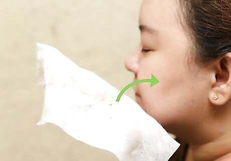 Apply the facial mask with your hand. You should cover almost your whole face and neck. Let it dry for about 10 minutes.
