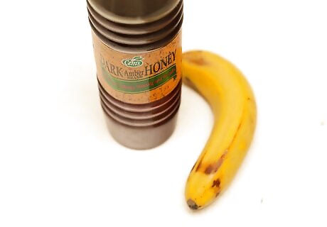 Assemble the needed ingredients. These are: 1 ripe banana Honey.