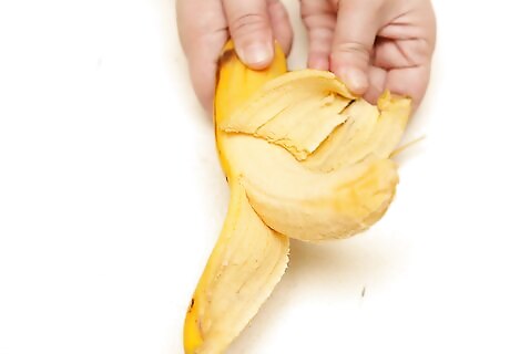 Peel and cut a banana in half. You can eat one half and use the other for the mask.