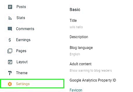 Open the settings for the blog. Locate the menu bar at the left side of the page and click "Settings". This should be directly underneath the "Theme" option and should have a bigger space underneath it which has the "Reading List" option directly under that big space.
