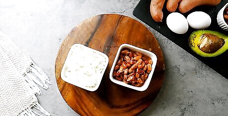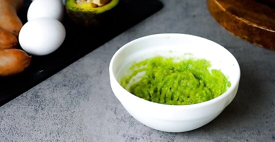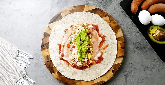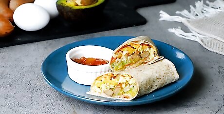 Mash up an avocado. Choose a ripe avocado, peel it, and crush it up into guacamole. Avocado is optional, but it can be a great way to add taste and texture to your burrito. For maximum freshness, wait to open the avocado until you've cooked the other ingredients and you're ready to wrap the burrito. If you don't use all of the avocado, store it in the refrigerator, covered, with a bit of citrus juice. If you are making a meatless breakfast burrito, you can use avocado as the "meaty" and filling main ingredient. This is a common substitute.