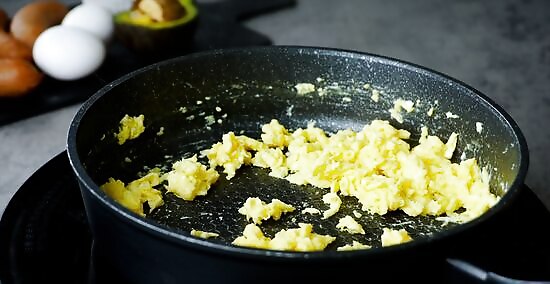 Scramble the eggs. If you want to keep your eggs, vegetables, and meat separate, then you can scramble the eggs in one pan, and cook the other ingredients in another pan. Otherwise, mix all of the ingredients into the egg bowl, then scramble together in a big pan. Alternately, mix all of the ingredients into the egg bowl, and microwave the bowl for approximately three minutes. Cooking times will vary, so check once the egg starts to rise. Do not let the egg rise up out of the bowl!