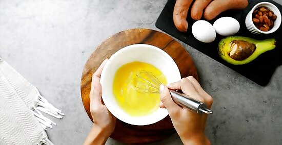 Crack two eggs into a clean bowl. Then, use a whisk or fork to beat the eggs until they are evenly mixed. Whisk for no longer than 20 seconds. If you beat the eggs for too long, they may grow dense. Consider adding a few tablespoons of milk or half-and-half to give the egg a fluffier texture. Water also works, in the same increment. Consider mixing cheese into the eggs. Use shredded cheese of your choice. Cheddar and jack usually work well in a breakfast burrito!